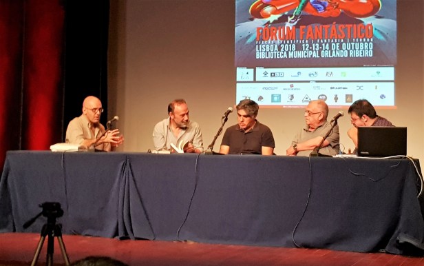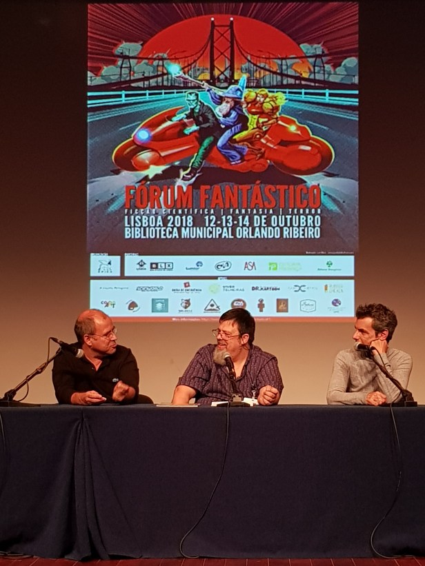 Mas o Fórum Fantástico não apresentou apenas novos livros. Este ano teve dois convidados internacionais, Chris Wooding e Gilian Redfearn que participaram em duas conversas sobre publicação e edição, em dois dias diferentes, sexta e sábado. Na sexta a conversa centrou-se mais em Gilian Redfearn, editora na Gollancz, uma das mais conhecidas editoras mundiais no género da ficção especulativa. Falou-se do processo de edição, das diferentes formas de editar e da forma como se escolhem as obras a publicar.