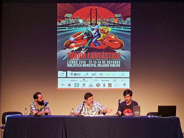 Ainda que, para mim, o dia de sexta tenha começado mais tarde do que o horário oficial, ainda apanhei parte da conversa “A Lisboa que teria sido… a Lisboa que poderá ser” em que se falou da cidade enquanto espaço de pessoas e para pessoas, espaço em mudança e adaptação constante. Claro que, tendo esta conversa, a presença de João Barreiros, Lisboa foi arrasada por monstros e alienígenas, mas sobrevive ainda, com vários futuros possíveis.