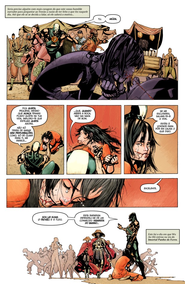 Dois dos maiores argumentistas da actualidade, Matt Fraction (Hawkeye, Criminosos do Sexo) e Ed Brubaker (Capitão América: Soldado do Inverno, Fatale, Velvet, The Fade Out) juntam forças com uma mão-cheia de artistas, entre os quais David Aja, Leandro Fernandez, Nick Dragotta, Travel Foreman, entre outros, para nos contar as histórias de Punhos de Ferro dos tempos passados, uma saga de artes marciais como nenhuma outra, que se estende ao longo de mil anos!