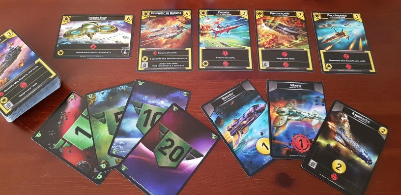 Para cumprir tal objectivo, o jogador vai adquirindo cartas mais fortes entre as que estão disponíveis na mesa, construindo bases para combinar poderes com os das naves, e infligindo dano ao adversário. As cartas possuem, sucintamente, três tipos de poderes base: pontos de dano, moeda e recuperação de pontos.