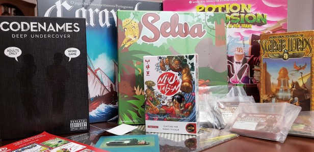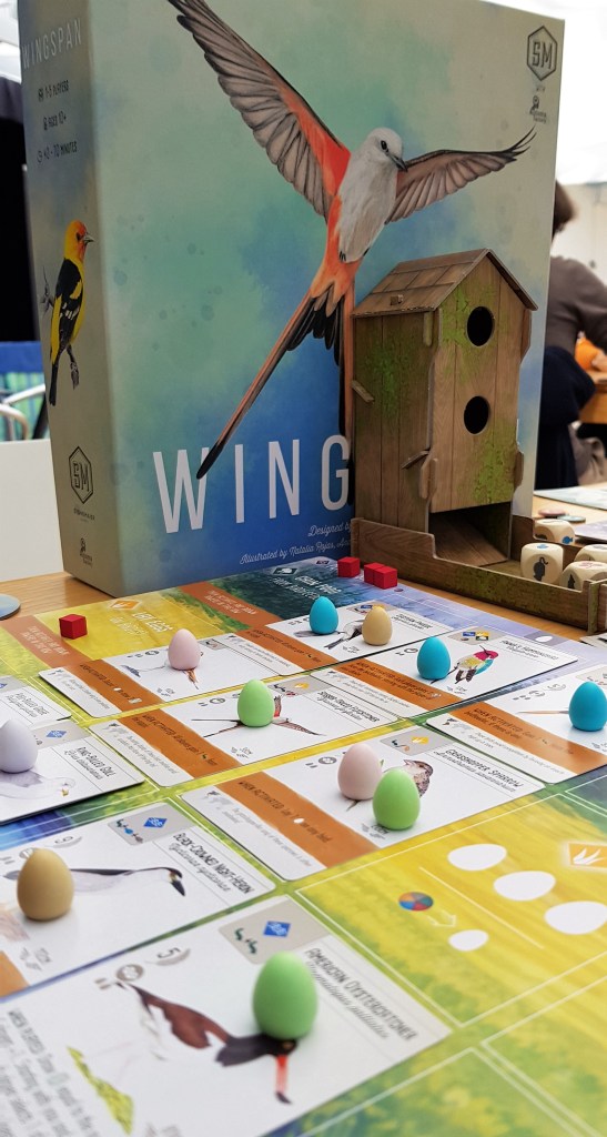 Bem, e então o que jogámos afinal? Uma das nossas primeiras experiências foi o famoso Wingspan, o jogo que está agora na moda e que gerou polêmica ao lançar, na segunda edição, um número de exemplares inferior às encomendas existentes. Considerado por muitos um dos jogos de 2019 (e o ano ainda vai no início) Wingspan revelou-se interessante pelos mecanismos de encadeamento que permite gerar, bem como pelos detalhes das aves e pela qualidade dos elementos. Será, assim que possível, uma das próximas aquisições, apesar de achar que dificilmente se tornará o jogo do “meu” ano. Vamos aguardar.