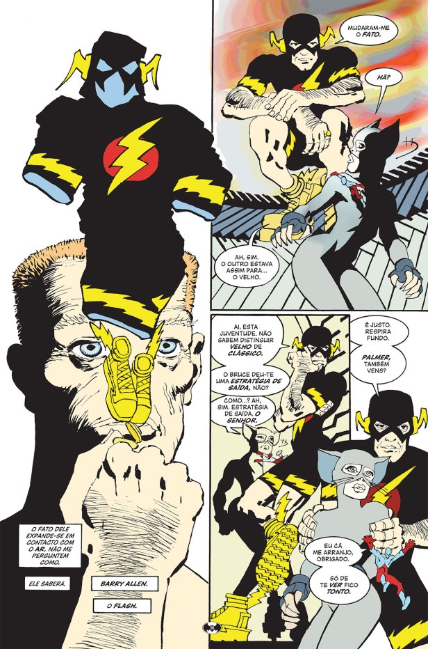 É essa utopia de fachada que vai ser destruída por um regressado Batman, que vai reunir todos os seus aliados para combater a ameaça de Lex Luthor. Outra diferença fundamental de O Cavaleiro das Trevas Volta a Atacar em relação ao seu antecessor é a presença alargada do panteão da DC, com personagens como Jimmy Olsen, Brainiac, Lex Luthor, Shazam, o Flash, Lanterna Verde, o Átomo, o Questão e Diana, a Mulher-Maravilha, que estiveram ausentes em O Regresso do Cavaleiro das Trevas, a serem fulcrais no evoluir da intriga desta história, em que a trindade dos maiores heróis da DC, constituída pelo Batman, Super-Homem e Mulher-Maravilha, brilha a grande altura, tal como Carrie Kelley, a Robin de O Regresso do Cavaleiro das Trevas, que se mantém como braço direito do Batman, mas agora enquanto Catgirl. Se, em termos gráficos, o registo escolhido pode não ser consensual, em termos narrativos, não há dúvidas quanto ao virtuosismo de Miller. Basta ver a forma como gere a presença do Batman, que permanece nas sombras durante bastante tempo, para surgir finalmente em toda a sua glória apenas no final do primeiro livro, para voltar a enfrentar o Super-Homem.