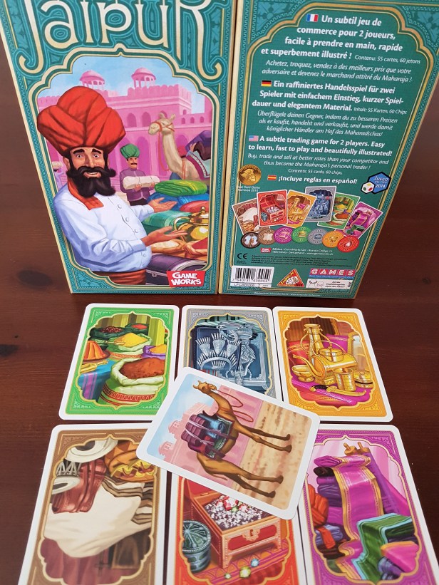 A ocupar o lugar 116 no Boardgamegeek (pelos menos à data em que escrevi este texto) Jaipur é dos jogos mais conhecidos para dois jogadores. Trata-se de um jogo com mecanismos de colecção de cartas e gestão de mão que leva cada um dos jogadores a realizar combinações que troca por determinada quantidade de pontos.