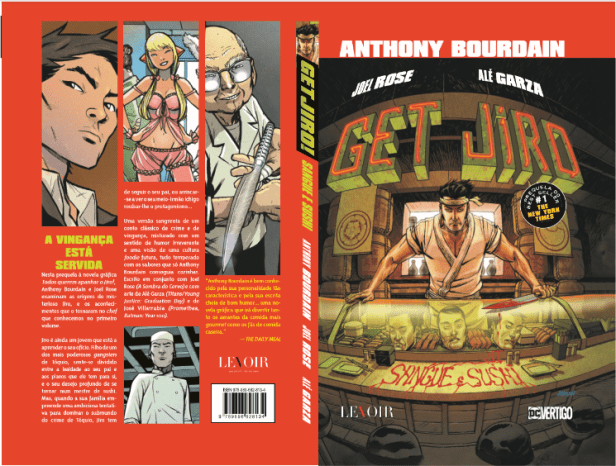 No primeiro livro, a história passa-se numa Los Angeles futurística, Jiro não hesita em atacar clientes que ousam pedir rolos Califórnia ou uma salada caprese em Janeiro. No segundo volume, que saiu em banca a 15 de Junho, a Levoir e o Público apresentam Get Jiro! Sangue e Sushi, nele Bourdain mostra o começo da carreira de Jiro, numa Tóquio distópica dominada por gangues. E, claro, muito sushi e culinária. A prequela é parceria de Bourdain com Alé Garza e Joel Rose.
