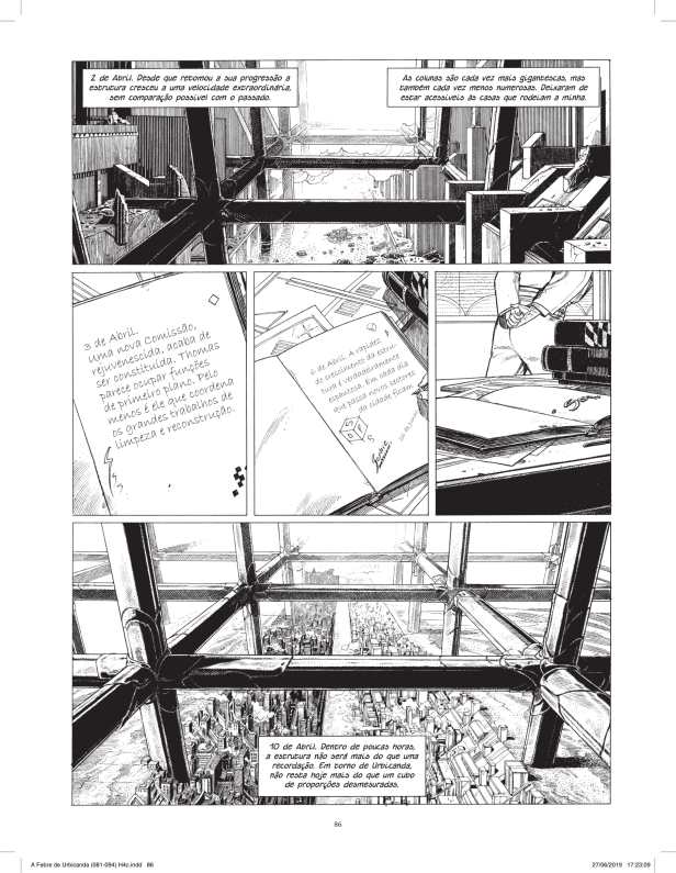 Esta quinta-feira, dia 18 de Julho, em banca o terceiro volume da colecção Novela Gráfica “A Febre de Urbicanda” de Schuiten e Peeters, um dos títulos mais emblemáticos da série Cidades Obscuras, premiado em Angoulême em 1985, esgotado em Portugal há mais de 20 anos e que agora regressa numa edição definitiva que, para além de um dossier final sobre a lenda da Estrutura, inclui também a história A Última Visão de Eugen Robick, feita em 1997 para o número final da revista (A Suivre), onde a série nasceu.