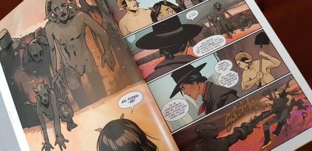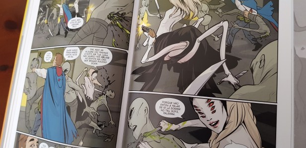 Ainda que pareça pouco relevante na narrativa global da série (terei de ler o seguinte para perceber se assim é) este volume volta a conter elementos imaginativos e fantásticos como o povo esterco, uma espécie de entidades pouco racionais (quase zombies) que ganham vida a partir das fezes e que atacam quem encontram, numa luta literalmente suja.