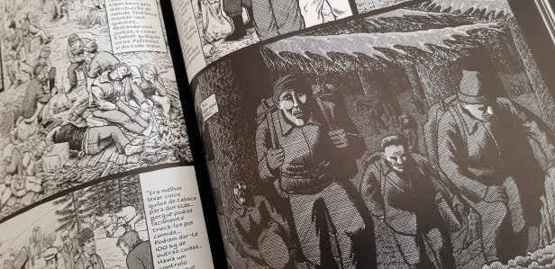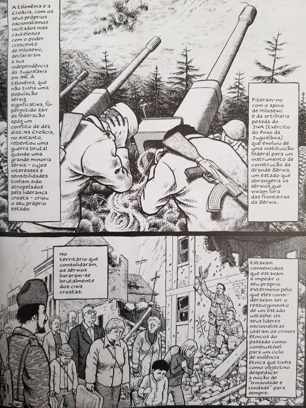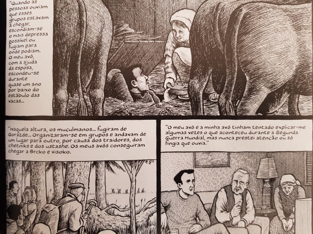 Esta é a perspectiva dos acontecimentos. Joe Sacco cita estes acontecimentso, mas dá a Gorazde a perspectiva de cada pessoa. As duras viagens pela neve onde tantos morrem. A corrida a meio da noite sob saraivadas de tiros. Ver familiares e amigos a sucumbir. Encontrar corpos torturados. Fugir sem saber se se sobrevive. Ser levado para uma ponte onde se decapitam, todas as noites, dezenas de civis, só pela diversão.