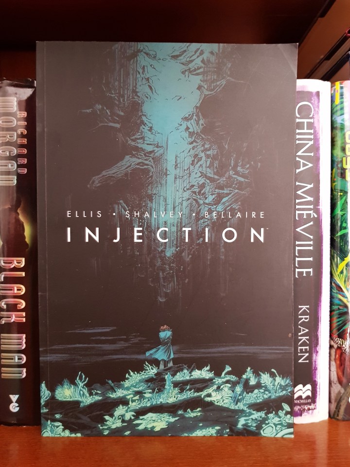 Passando às sugestos inteiramente estrangeiras, destaco Injection, uma obra de Warren Ellis que apresenta uma inteligiência artificial capaz de transformar a realidade, usando, para tal, elementos fantásticos de contos tradicionais. A cada volume abrem-se novos episódios de terror. A Inteligência Artificial testa frequentemente novos limites, sem sentido de moral ou de ética.