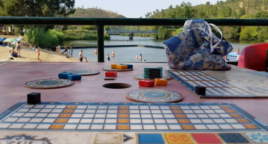 Azul é um dos jogos a dois mais apreciados cá em casa, sendo transportado para quase todas as férias e acontecimentos familiares. A simplicidade das regras, a par com as mecânicas simples, tornaram-no numa escolha óbvia ao final do dia de trabalho, ou ao ar livre (para mais informações podem consultar o meu comentário ao jogo). Apesar da aparente simplicidade, permite (principalmente a dois jogadores) definir várias estratégias de jogo.