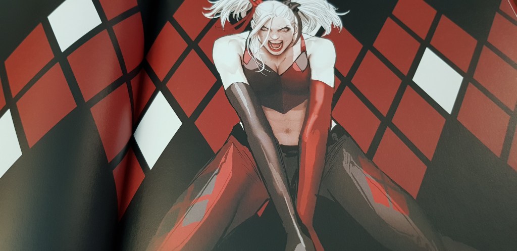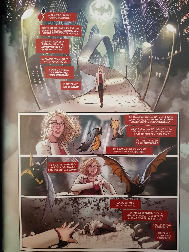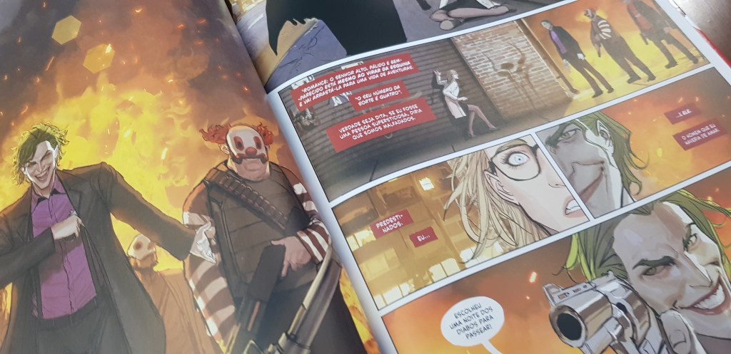 Não é, portanto, um volume carregado de acção, apesar de se mover bem. É, sobretudo, um volume de desenvolvimento de personagem, que pretende explicar como uma jovem se pode tornar a companheira do Joker, e como pode passar de uma jovem isolada a criminosa.