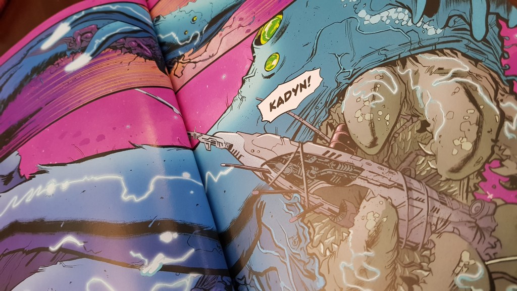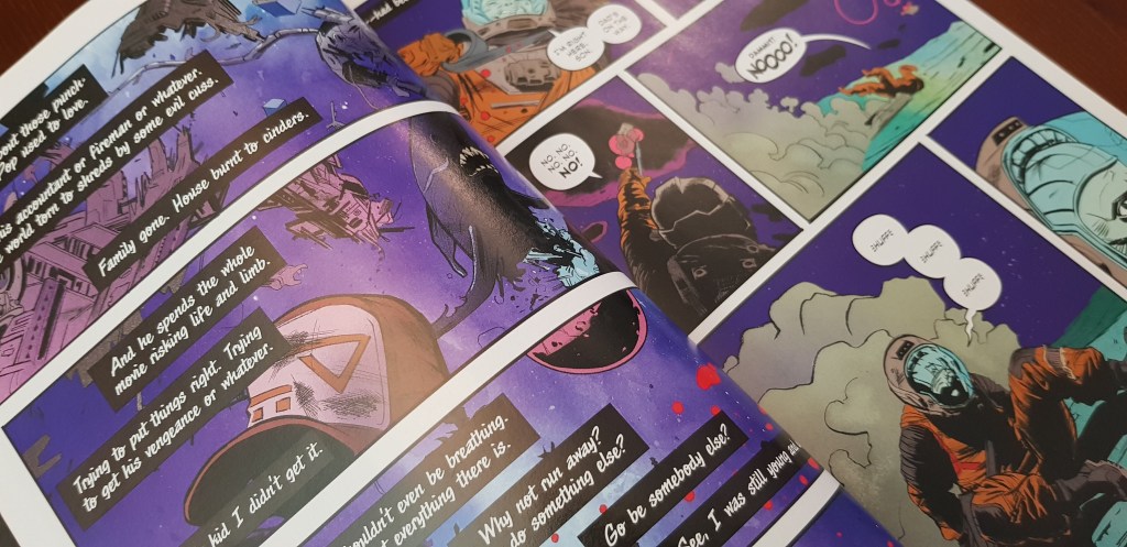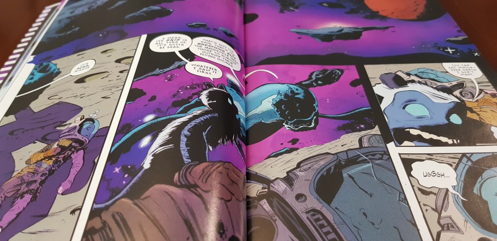 Em termos visuais, as cores são fortes. Sempre fortes. Os contrastes criados são agradáveis quando se consulta o volume, mas conseguem saturar aquando da leitura (no meu caso, li o volume de uma só vez). Adicionalmente, existem algumas passagens em que esta extensão colorida resulta nalguma confusão visual.