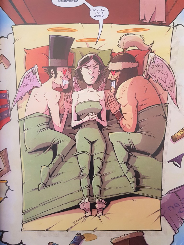 Para quem não leu a série (que vergonha!) e não quer spoilers, aconselho saltar os dois próximos parágrafos. A história deste volume começa com a irmã de Tony Chu no paraíso! Sabendo-se vingada, aproveita todas as coisas boas que a vida eterna lhe poderá dar, incluindo a omnipotência e os múltiplos amantes!
