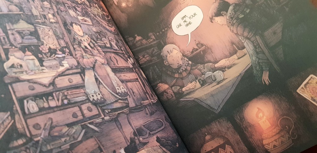 Ye é daqueles livros que atrai à primeira vista. A capa apresenta uma personagem que está nitidamente em apuros sobre um cenário detalhado, e se virmos rapidamente algumas páginas, estas apresentam um padrão visual semelhante à capa. Portanto, em termos gráficos é um volume interessante, sendo na componente narrativa que pouco tem de novo ou de inovador.
