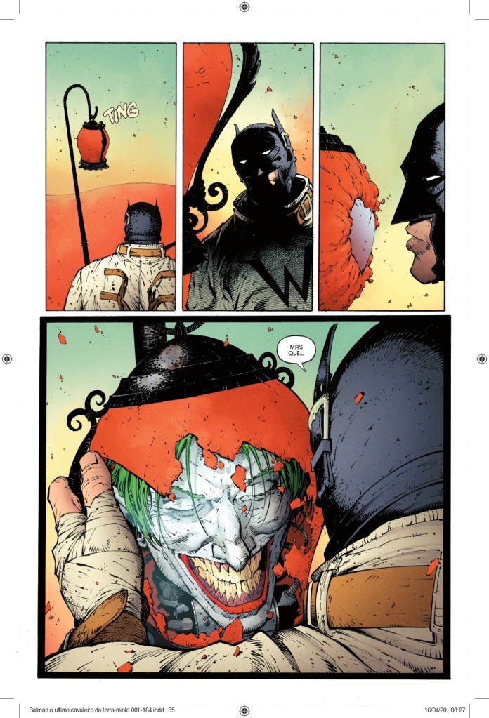 Bruce Wayne tenta descobrir o mistério do seu passado, enquanto procura desvendar a causa desse futuro terrível e rastrear a força indescritível que destruiu o mundo tal como ele o conhecia… Uma história que não podia ter um início mais surpreendente e inesperado, com um jovem Bruce Wayne que acorda no Asilo Arkham… para descobrir que Batman nunca existiu, senão na sua imaginação perturbada. A maioria dos membros da Liga da Justiça está morta ou desaparecida, cidades inteiras foram reduzidas a ruínas e vilões aterrorizantes parecem esconder-se em todos os cantos das terras áridas que compõem essa realidade distópica. Batman tem como companhia a cabeça decapitada de Joker dentro de um frasco. Mas o facto de ter perdido o corpo não acabou com a verve do príncipe palhaço do crime, bem pelo contrário. Além de nunca se calar ao longo de toda a história, é ele o inesperado narrador desta aventura, funcionando igualmente como o guia do Cavaleiro das Trevas nesta descida (literal) aos Infernos.