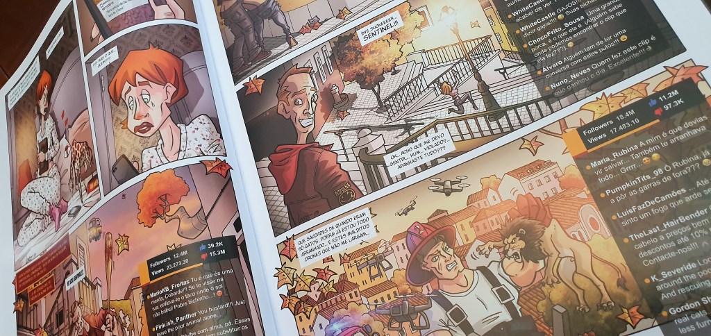 Tal como no livro anterior, a narrativa é acompanhada pelos possíveis comentários dos que seguem os canais dos observadores. Novamente, alguns dos comentários têm nicks alusivos a personalidades da banda desenhada, desde editora a autores – uma componente que tem piada adicional para quem conhece as pessoas e pesquisa, por entre os falsos diálogos as referências.