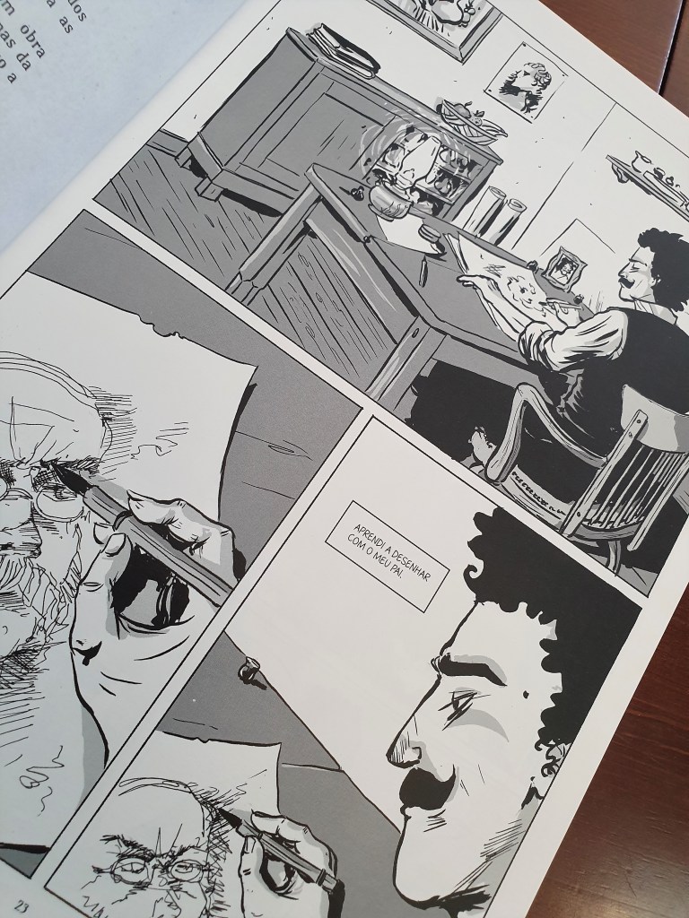 A obra começa por nos apresentar o artista no Brasil, convivendo alegremente com os animais da região e sendo alvo de atentados por conta das suas publicações críticas da política do país. Este enquadramento caricato justifica o regresso a Portugal e apresenta rapidamente o espírito do artista.