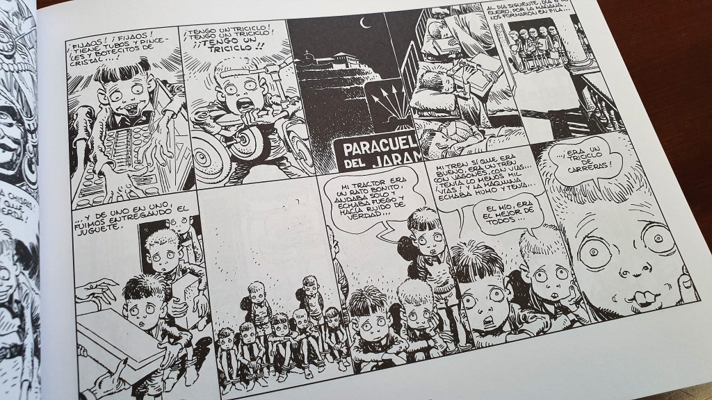 Todo Paracuellos é uma leitura excepcional que nos leva num rodopio de emoções. Rimo-nos com as diabruras. Choramos com os castigos duros e injustificados. Sentimos pelas crianças que são abandonadas por adultos egoístas. Simpatizamos com a sua obsessão por pequenos livros de banda desenhada. Antagonizamos os adultos que os maltratam.