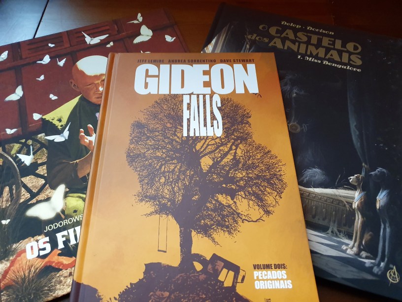 Entre os mais recentes moradores das minhas estantes encontramos o segundo volume de Gideon Falls, a série de terror de Jeff Lemire que é publicada em Portugal pela G Floy. O autor costuma escrever noutros registos e nunca o tinha visto no de horror, mas utiliza as mesmas ferramentas de outras histórias para trazer suspense, mistério e terror de forma perfeita.