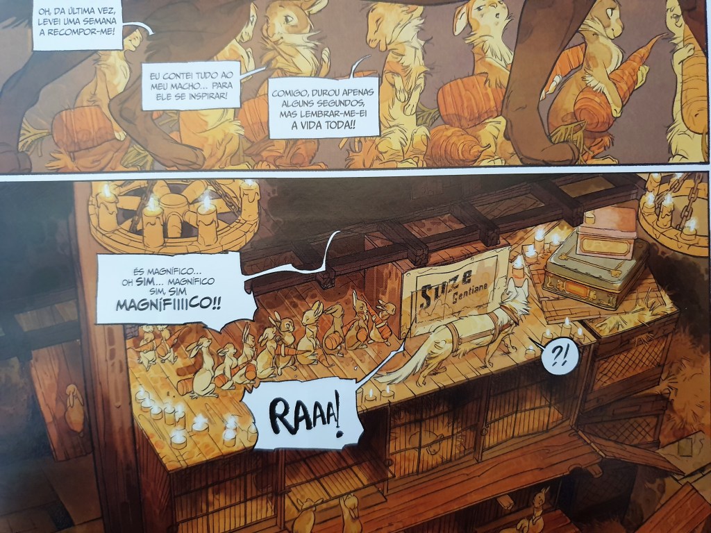 Em grande formato, de capa dura e aveludada, este voluma destaca-se, numa primeira abordagem, pelo visual. O desenho é expressivo e detalhado, oscilando entre diferentes planos que nos permitem acompanhar devidamente a história.
