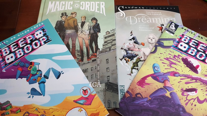 85 – The Dreaming – Vol. 1 – Regressamos ao mundo de Sandman, mas agora com um novo senhor dos sonhos. Tal como acontece na série original, o senhor está ausente e, como tal, o seu mundo quebra-se lentamente e as figuras criados em sonhos andam à deriva. Visualmente agradável, não está no mesmo nível da série original (o que, também, é difícil). Curiosa para saber a evolução da série nos próximos volumes;