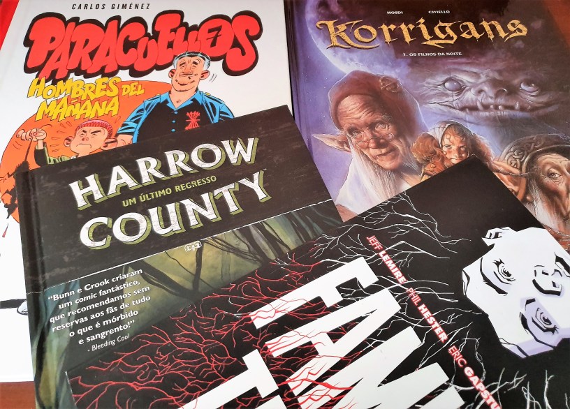 106 – Os Filhos da Noite – Vol. 1 – Korrigans – Mosdi e Civiello – Eis uma leitura que queria fazer há mais de uma década. Visualmente pesado mas com páginas fantasticamente fascinantes, apresenta uma típica história de fantasia celta, em que os humanos são puxados para outros reinos, numa luta de bem contra o mal que tem vários clichés;