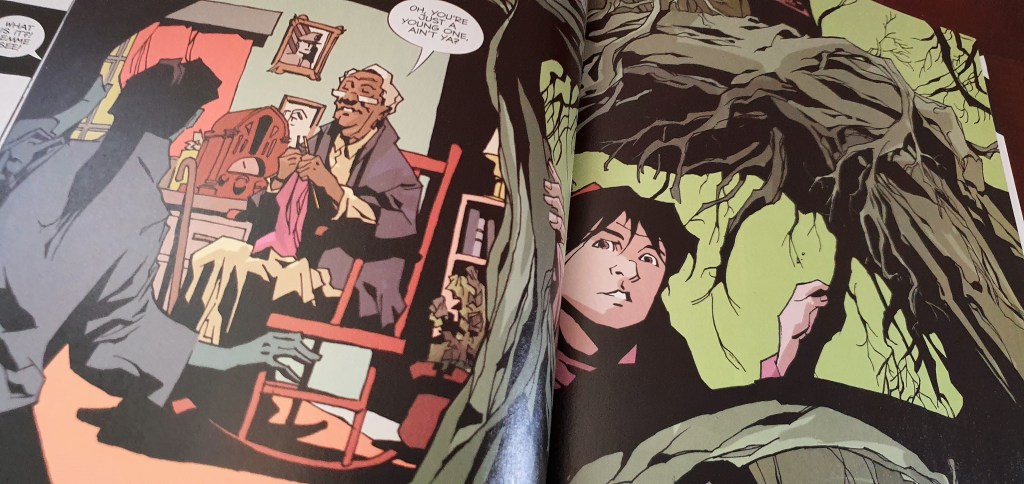 Que Jeff Lemire consegue mover rapidamente uma narrativa não é surpresa. O que é surpresa é o que o faça sem ter criado uma ligação genuína com as personagens. A caracterização, ao contrário do que lhe é habitual foi pouco centrada em cada um, não me chegando a envolver. Adicionalmente, as interacções com o avô parecem rápidas, precipitadas e pouco genuínas.