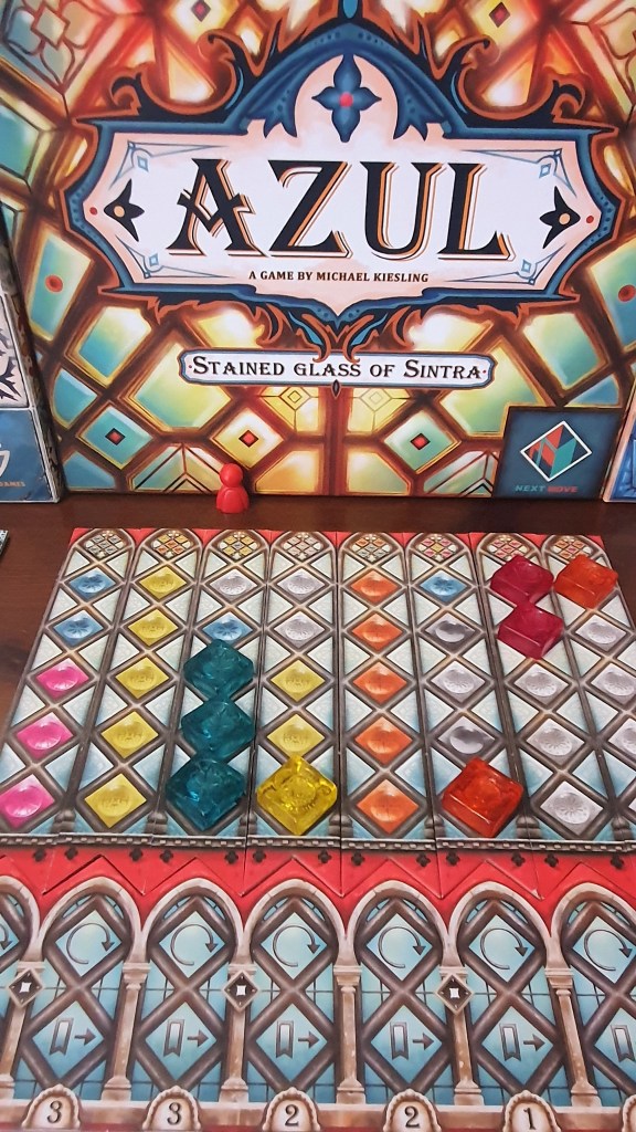Já no segundo Azul, Stained Glass of Sintra, as peças recordam rebuçados de Halls e a combinação de cores é mais deslavada nalguns componentes (como as fábricas). Em termos de sensação de jogo, a forma de colocar peças e de pontuar é menos linear e difícil de encadear logicamente. O resultado é um jogo difícil de perspectivar.