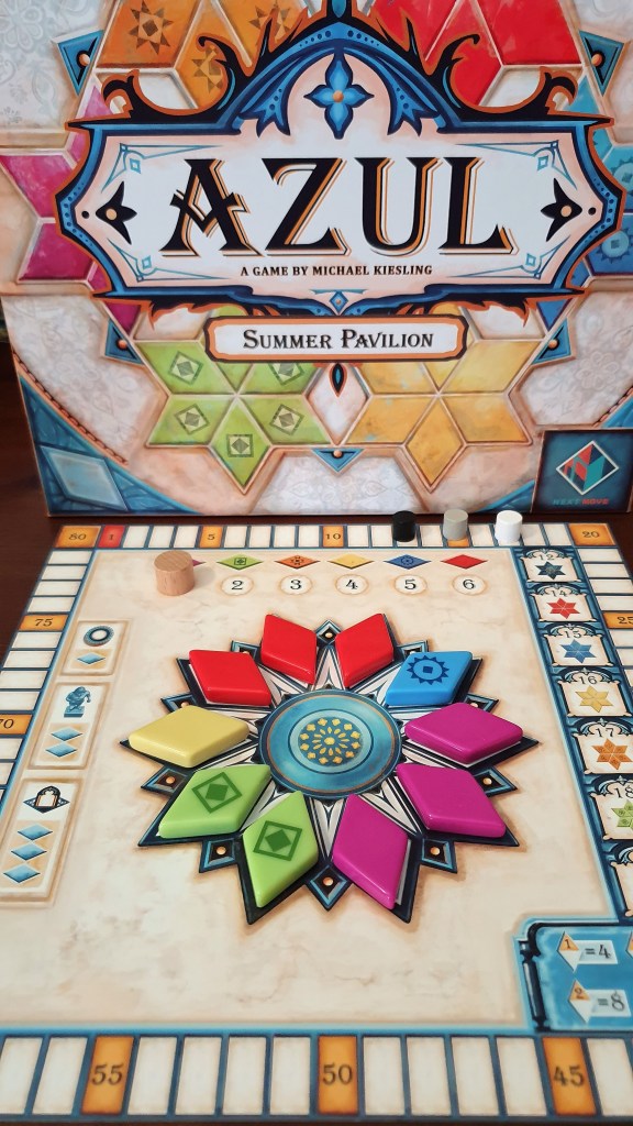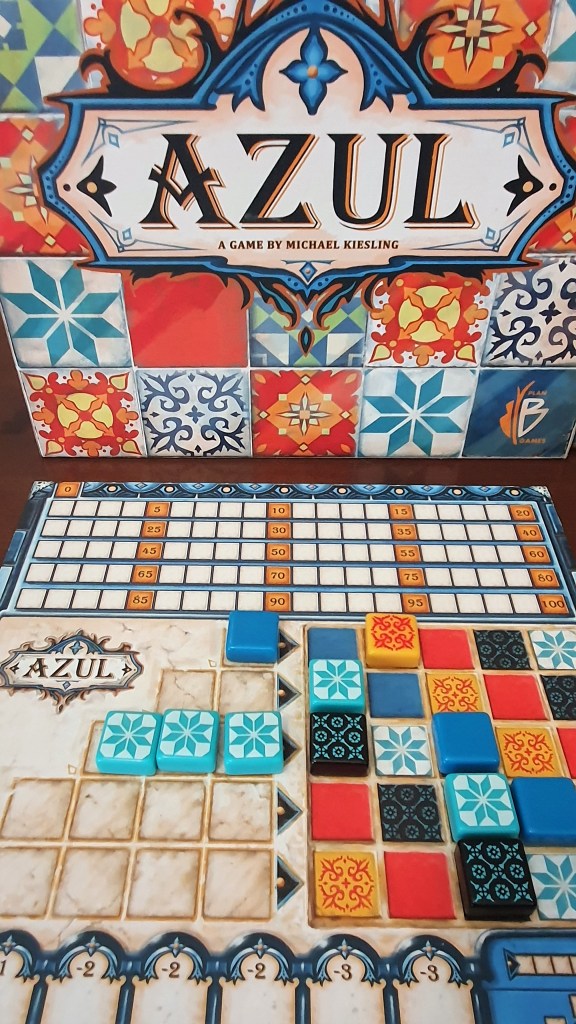 Vencedor do Spiel des Jahres (e de outros inúmeros prémios), Azul encontra-se no primeiro lugar do top de abstractos e no 45º do top global (Boardgamegeek – pelo menos, no momento em que escrevo este texto). No seguimento do sucesso de Azul, foram criados outros dois jogos, também de nome azul. Estes dois, ainda que tenham alguns mecanismos semelhantes, são suficientemente diferentes em dinâmica para conferirem sensações de jogo distintas. Ambos se encontram bem posicionados no top do Boardgamegeek, com Azul: Stained Glass of Sintra (o segundo Azul) a ocupar o lugar 298, e Azul: Summer Pavillion (o terceiro Azul) a ocupar o lugar 180. Pelo menos na altura em que escrevi este artigo.