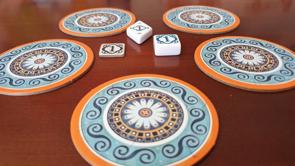 Como? Bem, para além dos padrões circulares, o tabuleiro contém algumas figuras dispersas ao longo do tabuleiro. Se conseguirmos rodear estas figuras com as peças colocadas, podemos escolher mais peças dum tabuleiro geral. Isto permite-nos escolher, no final da ronda, as colocações que nos dão mais peças, rodeando outras figuras, e obtendo ainda mais peças. Claro que este encadeamento tem um limite, dado que algumas das posições requerem muitas peças para ser preenchidas.