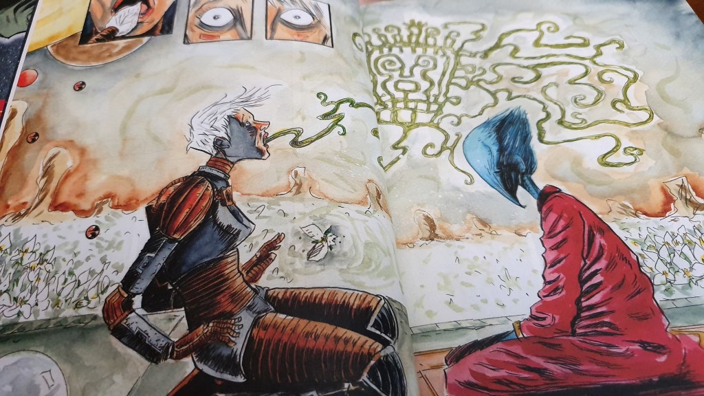 A componente visual é transmitida pelo traço peculiar de Jeff Lemire, mas aqui mais cuidado do que noutros trabalhos dele em que se apresenta mais rascunhado. O resultado são algumas páginas com muito bom aspecto. Não desgosto de ver este traço nalgumas narrativas, mas entendo que posso não ser ao gosto de todos.