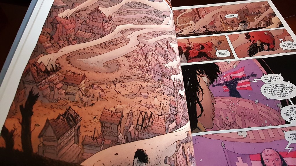 Elaborando. Na realidade construída em Little Bird, os Estados Unidos da América são dominados por uma extrema religiosidade que condiciona o quotidiano, a tecnologia e os relacionamentos. Esta premissa já a vimos em várias narrativas, destacando-se, claro, a comparação com um êxito recente, The Handmaid’s Tale. A forma como a religiosidade afecta os Estados Unidos é, no entanto, bastante diferente nesta narrativa, com uma linhagem de imperadores de hábitos arrepiantes.