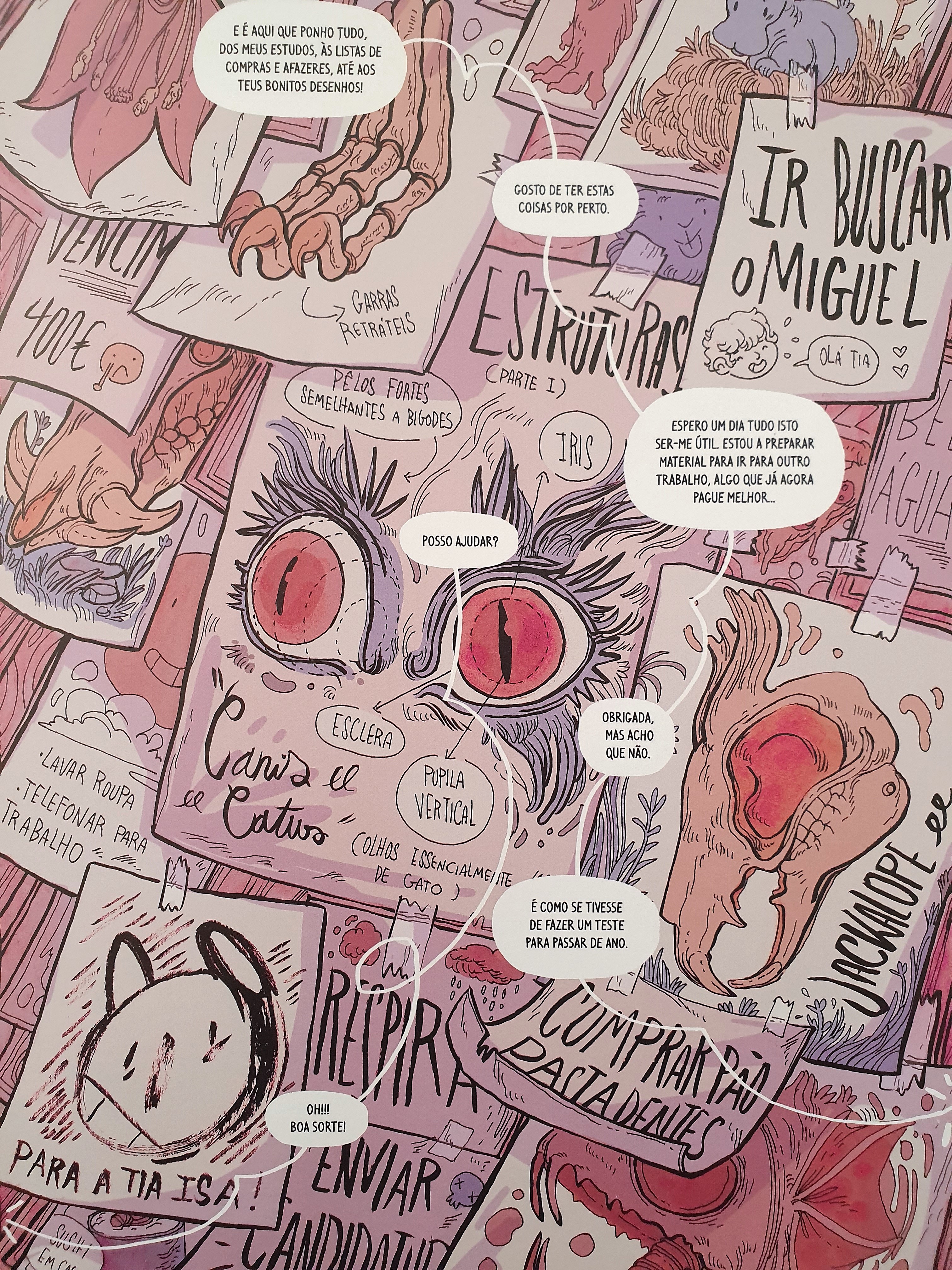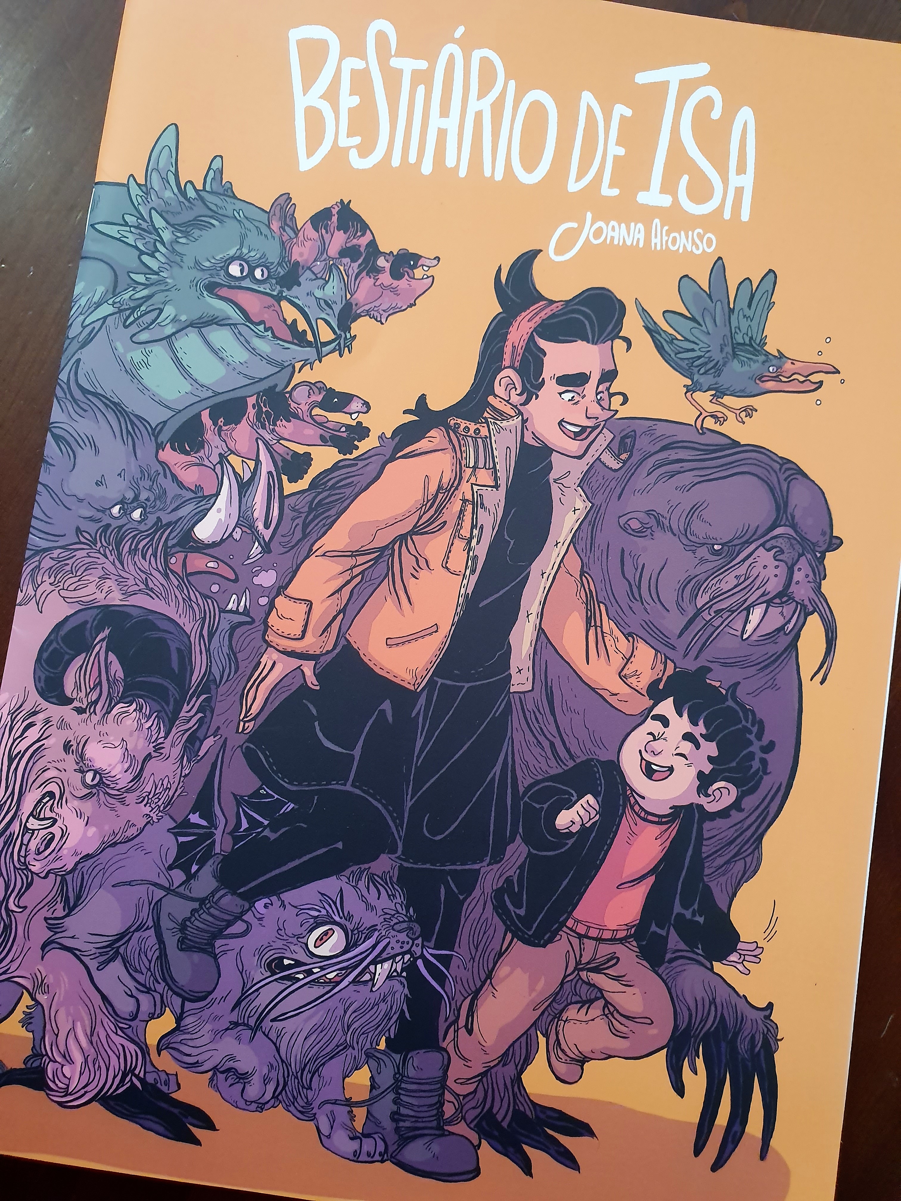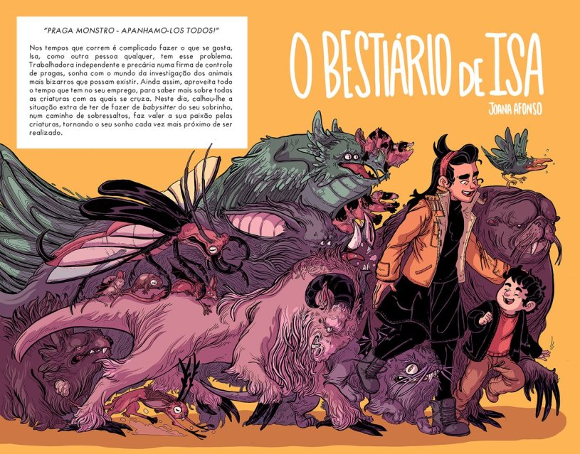 Em Bestiário de Isa encontramos o estilo visual que já é normal em Joana Afonso. A premissa dá-lhe espaço para explorar novas criaturas impossíveis mas fantásticas e o desenho contém aqueles detalhes naive que já lhe são usuais. A ideia é simples e, nestas páginas, desenvolvida de forma competente. Como único defeito deste pequeno livro aponto as cores, que nalgumas páginas parecem estar demasiado saturadas. Estou bastante curiosa para ver o livro final e espero que corresponda às expectativas elevadas que agora tenho.