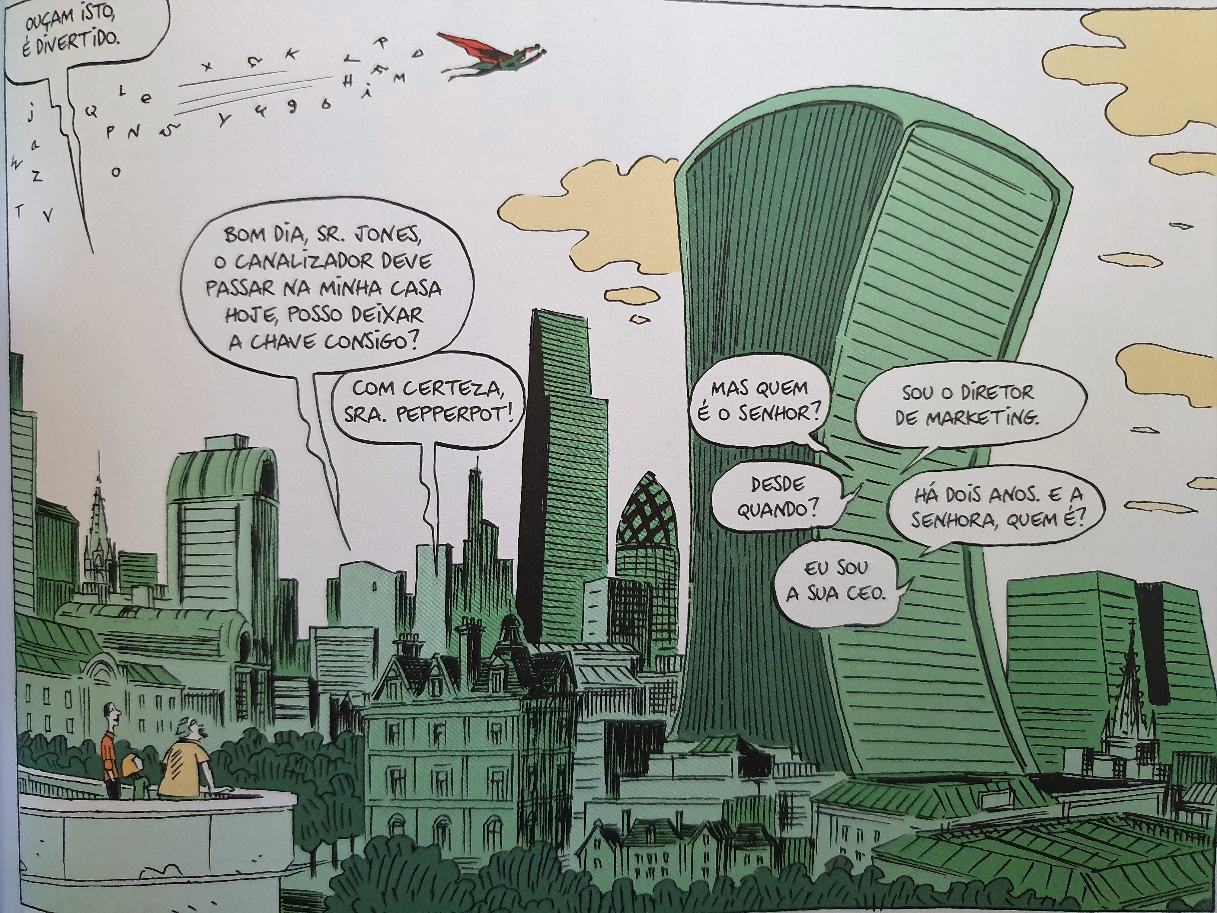 A narrativa é dinâmica. Por um lado alterna entre vários formatos para ir apresentando vários focos e várias ideias, fazendo-nos saltitar entre personagens e acontecimentos. Por outro, o modo de conversa ou palestra, alternando perguntas e explicações possibilita apresentar um raciocínio dinâmico que é facilmente seguido pelo leitor.