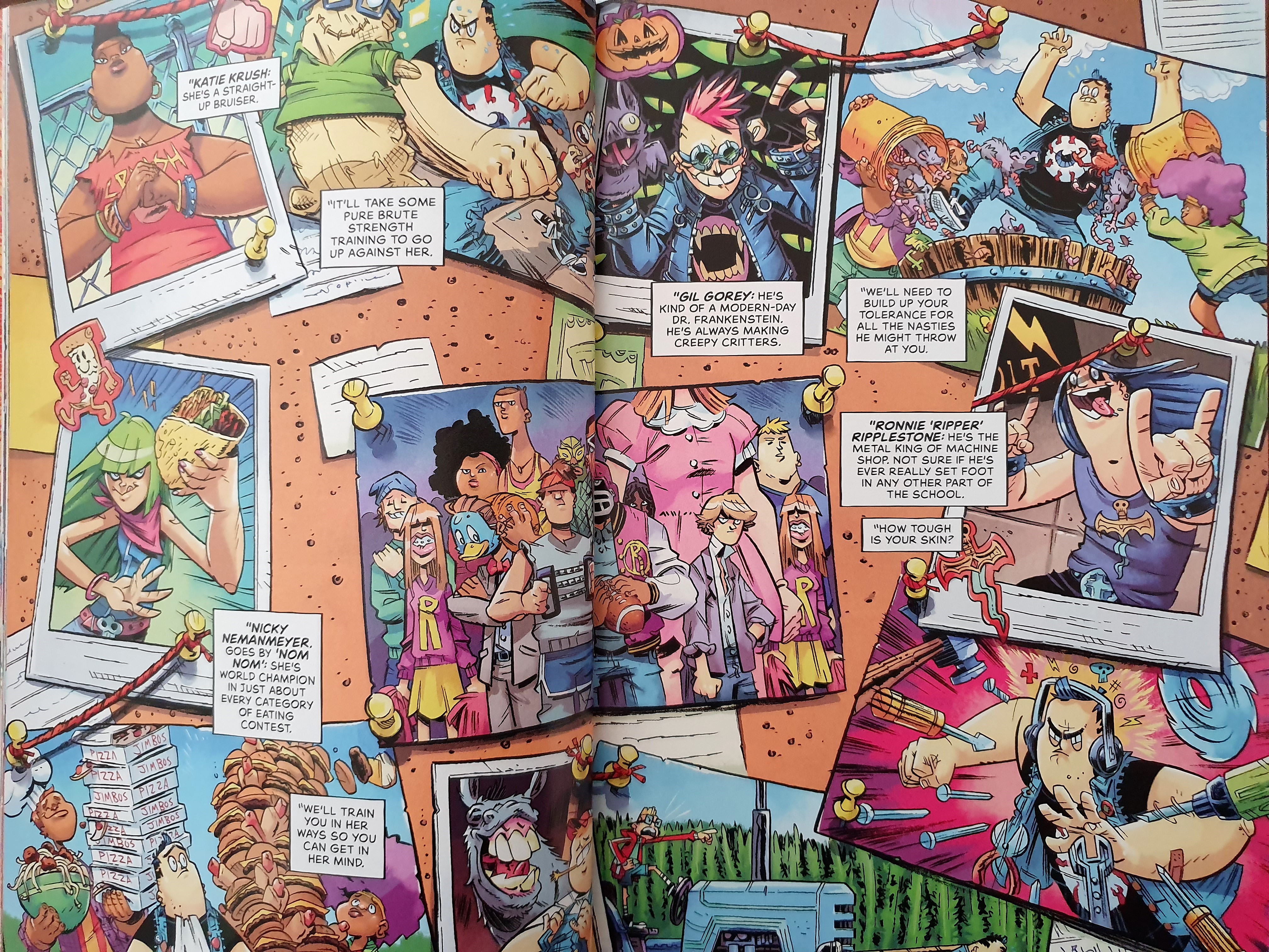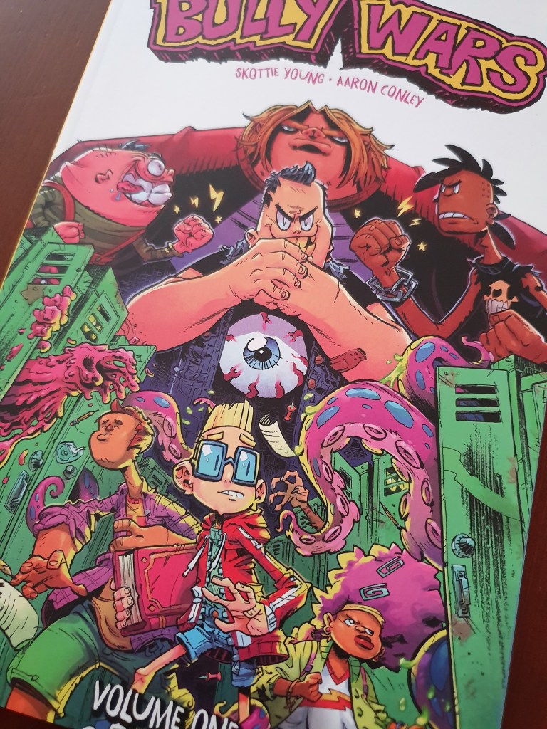 I Hate Fairyland ou Middlewest são duas das séries recentes de Skottie Young que li até ao final. Ambas se centram em jovens adolescentes que enfrentam as suas próprias batalhas e que partem em demanda. Pelo menos Middlewest, dado que a personagem principal de I Hate Fairyland até parece uma criança, mas de jovem apenas tem o aspecto. Em Bully Wars a narrativa volta a centrar-se em jovens, neste caso num grupo que vai começar o ano numa nova escola: os nerds e o bully que lhe infernizou a vida desde que se recordam.