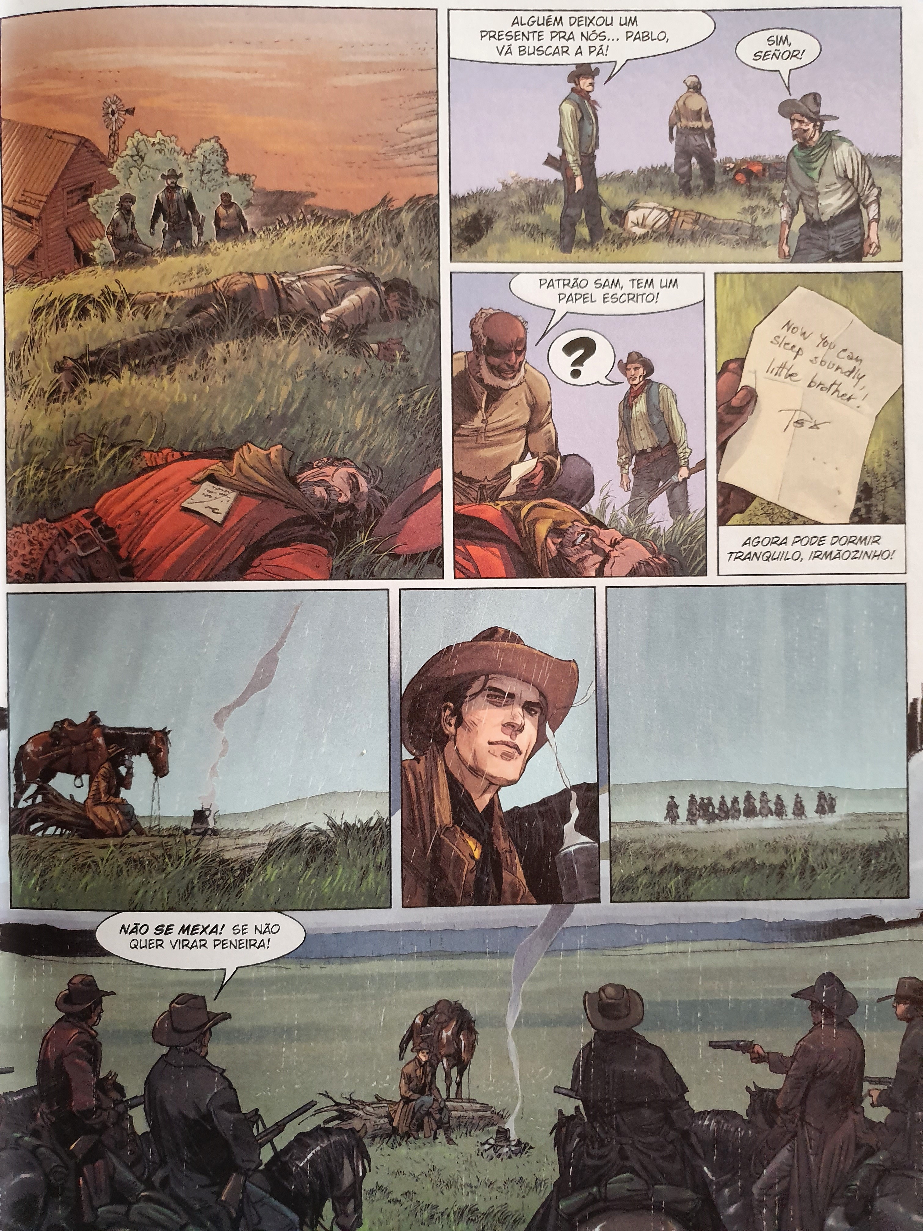 Ao longo da sua missão encontra um Ranger experiente que, numa primeira fase o tenta dissuadir, mas que, depois acaba por o acompanhar. Paralelamente, acompanhamos, também, por vezes, o irmão de Tex que tenta manter uma existência mais pacífica. Ainda que tenha mais cabeça fria que o irmão, acaba, também, por se ver em apuros ao defender uma jovem viúva.