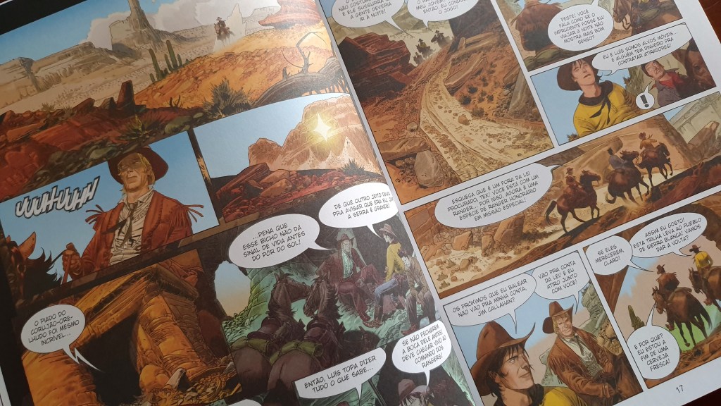 Acima de tudo, acho interessante a oferta diferenciada da Mythos que proporciona diversos formatos, permitindo vários valores para as histórias de Tex. Mas em termos de edição prefiro a capa dura e o papel superior das edições portuguesas a cores.