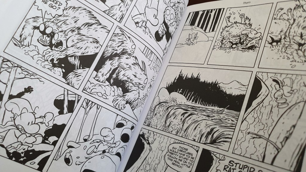 A história, épica, contém elementos cómicos e fantásticos. Por um lado, temos diálogos inusitados entre as criaturas rato – desde a sua obsessão por quiches, à sua incapacidade de caçar. As criaturas são perigosas, mas a sua postura é desengonçada e acabam sempre por falhar nas caçadas. Estes pequenos episódios de perseguição recordam alguns desenhos animados clássicos, como Tom & Jerry ou o Coiote e o Beep Beep. O resultado é óbvio – mesmo sendo Bone a personagem principal, conseguimos sentir alguma empatia por estas duas criaturas esfomeadas e de mente simples.