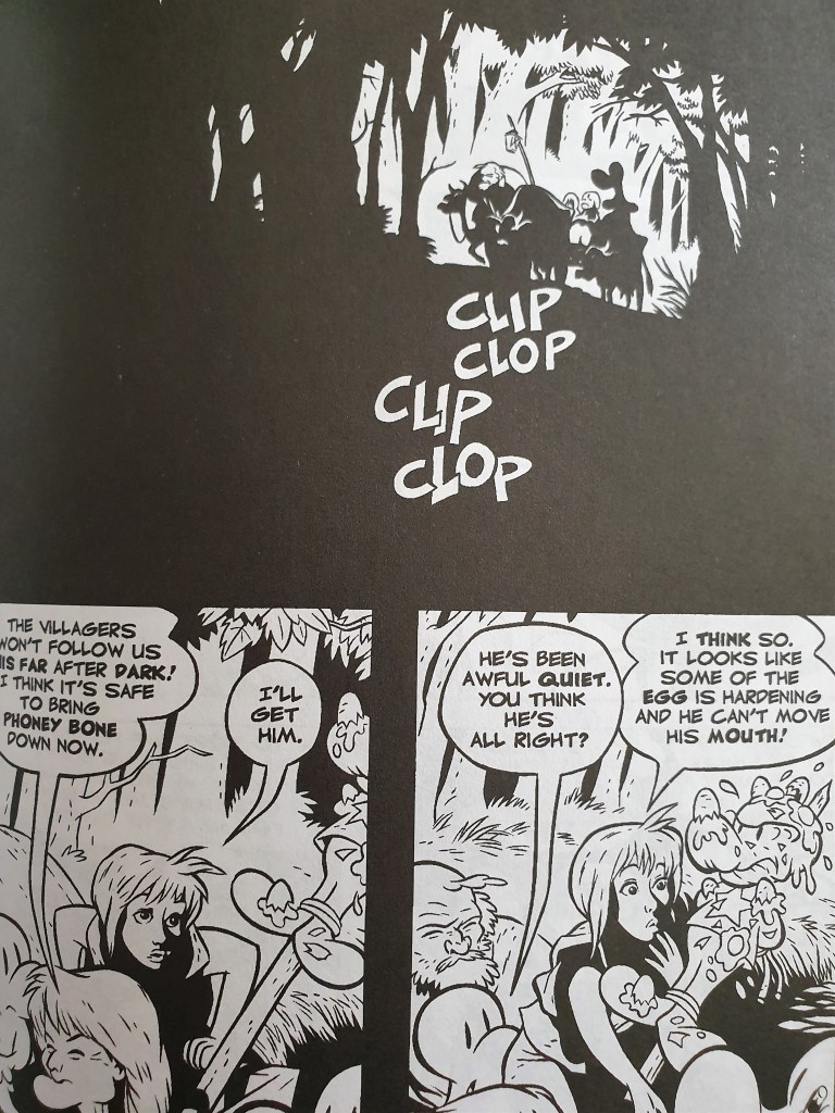 Quando finalmente encontram um mapa, conseguem sair do deserto, mas acabam por se separar ao tentar fugir de uma nuvem de gafanhotos. A partir deste ponto a história centra-se, sobretudo, em Fone Bone que, tendo descoberto um vale, aqui passa o Inverno sem os primos. Estes meses de intensa neve são passados a conhecer outras personagens e, apesar de alguns episódios mais movimentados, esta parte da história serve para desenvolver a personalidade de Bone e nos mostrar a sua usual forma de agir. Este quotidiano é quebrado quando Bone conhece Thorn, uma jovem humana e se muda para a quinta. Aqui acabará por conhecer a avó de Thorn, uma personalidade peculiar, directa, bruta mas forte para a idade e que vencerá todos os anos a corrida das vacas.