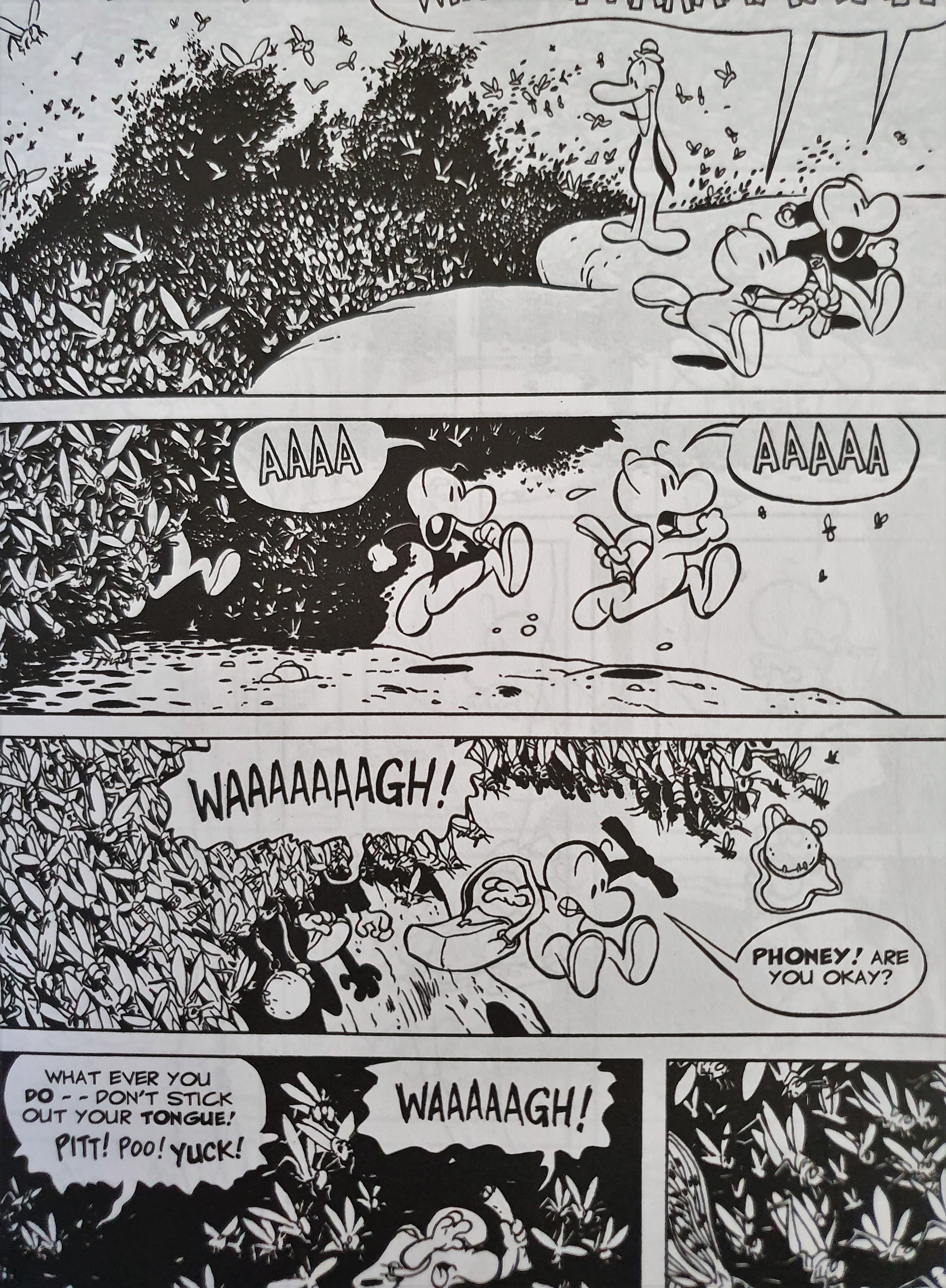 A história, épica, contém elementos cómicos e fantásticos. Por um lado, temos diálogos inusitados entre as criaturas rato – desde a sua obsessão por quiches, à sua incapacidade de caçar. As criaturas são perigosas, mas a sua postura é desengonçada e acabam sempre por falhar nas caçadas. Estes pequenos episódios de perseguição recordam alguns desenhos animados clássicos, como Tom & Jerry ou o Coiote e o Beep Beep. O resultado é óbvio – mesmo sendo Bone a personagem principal, conseguimos sentir alguma empatia por estas duas criaturas esfomeadas e de mente simples.