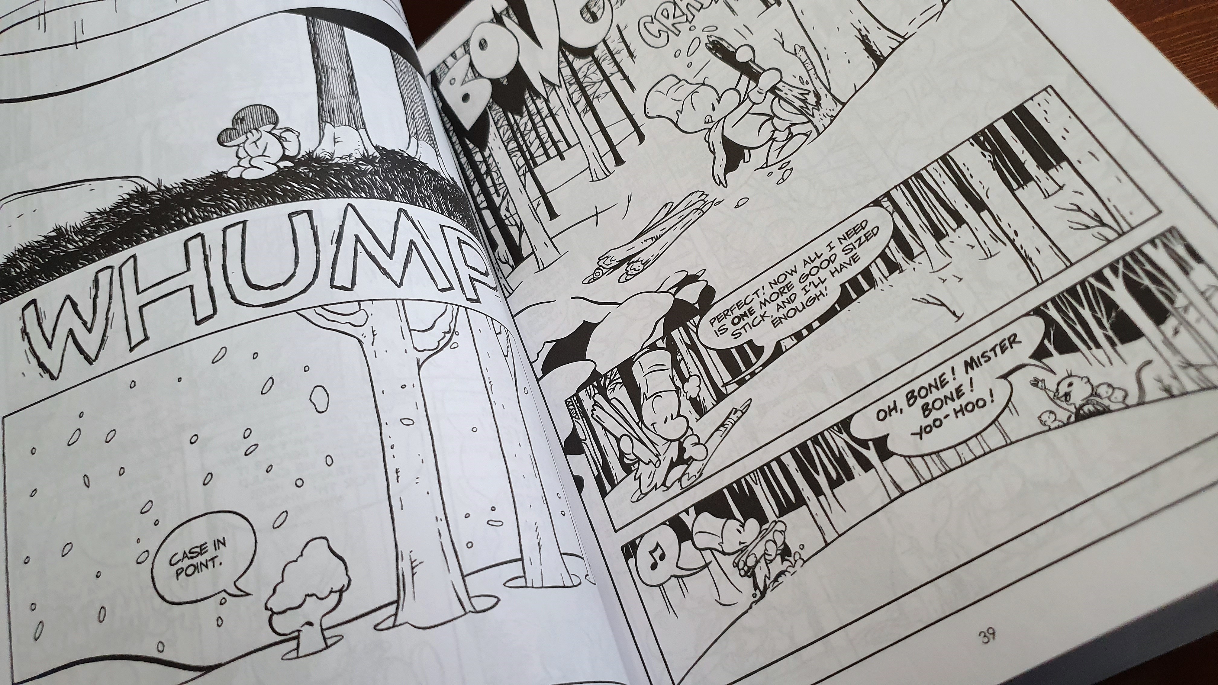 Bone é a história épica perfeita. Decorre num mundo fantástico, mas os elementos mágicos são ponderados e espaçados, necessários apenas pela manifestação de uma força maligna. Bone consegue introduzir as personagens e o contexto sem o sentimento usual de urgência no início mas com interacções cómicas, expressões e posturas. O desenvolvimento épico não é forçado mas algo que aparece naturalmente como uma resposta às circunstâncias. Mas ainda assim há espaço para explorar outros episódios narrativos interessantes, criando-se novas ligações e interacções. É, sobretudo, uma história capaz de cativar e de envolver, de detalhes fabulosos (nem falta uma obsessão literária, neste caso de Bone pelo livro Moby Dick) que deixa uma intensa sensação de saudade.