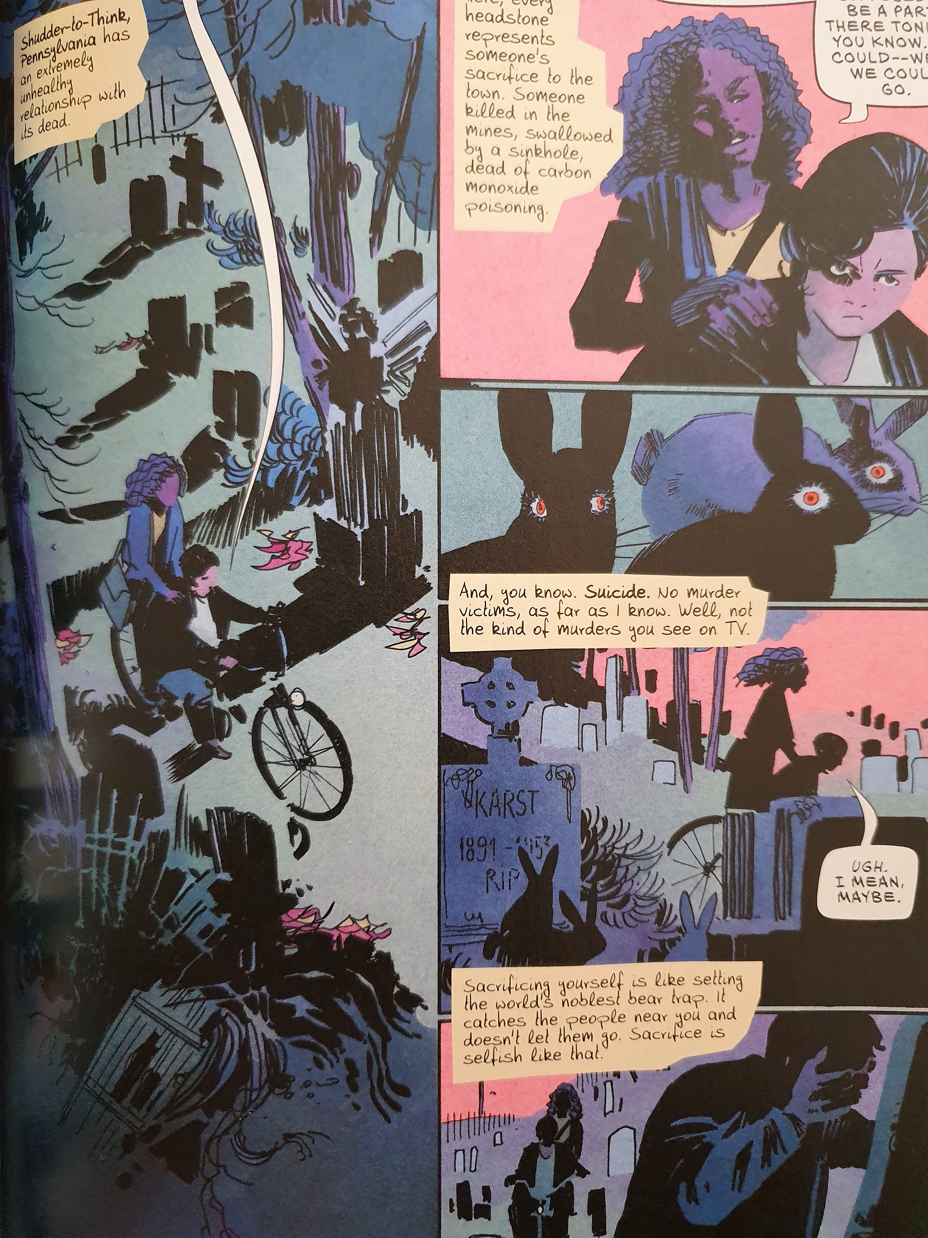 The Low, low woods explora uma narrativa de horror centrando-se em duas jovens queer. Fá-lo de forma natural, usando os seus relacionamentos como complemento da história e não como parte de um conflito narrativo, tal como tinha feito nas várias histórias de O Corpo Dela e outras Partes.