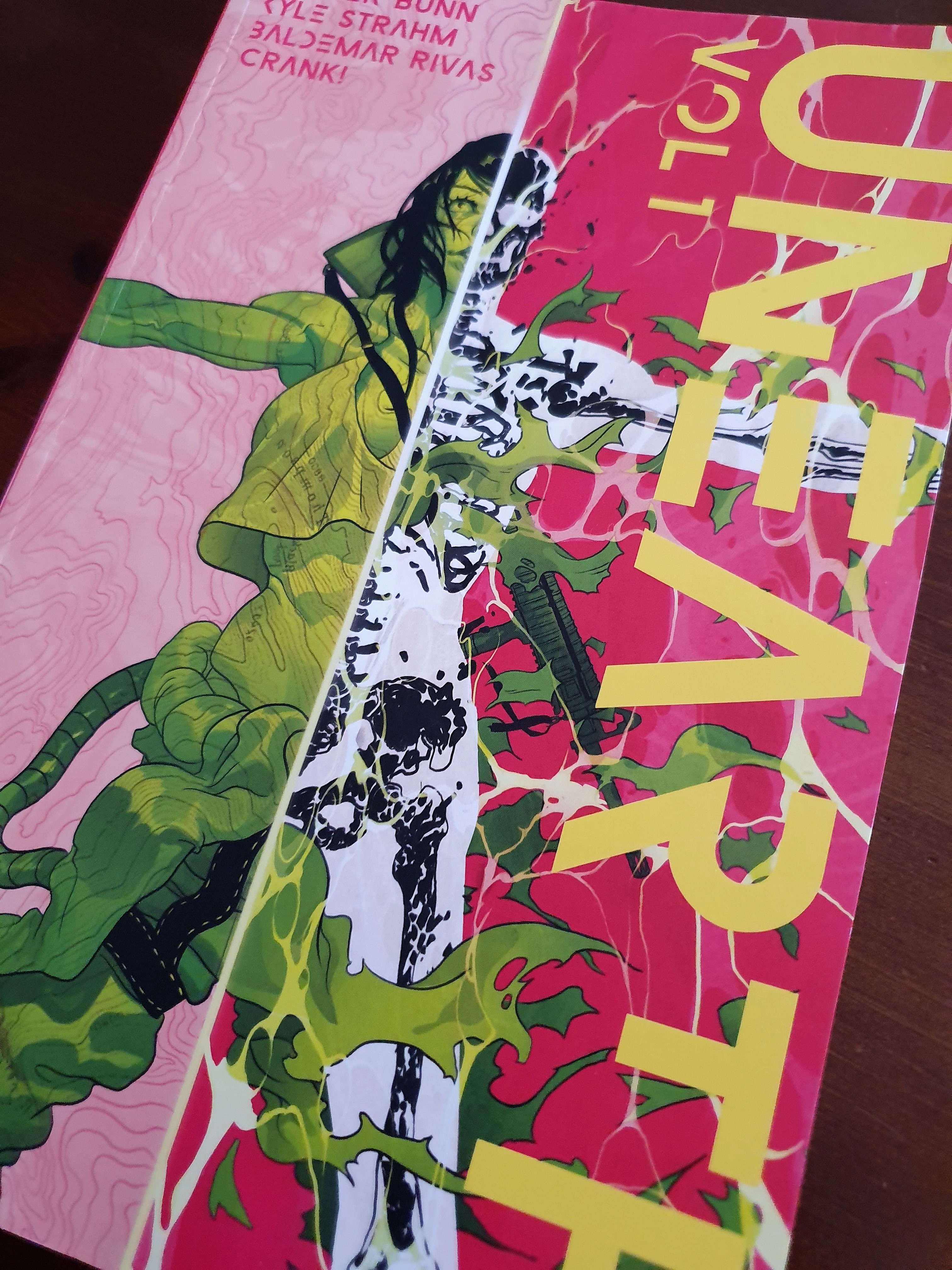 Carregada de momentos de acção, sem grande foco em personagens ou na criação da usual empatia inicial (através de contexto ou momentos mais próximos), Unearth é uma série que não me fascinou, e não devo prosseguir com a leitura (a não ser que me disponibilizem os próximos volumes para leitura). Ainda que não seja um volume mau e até tenha momentos interessantes, não me despertou curiosidade suficiente para querer saber o que acontece de seguida.