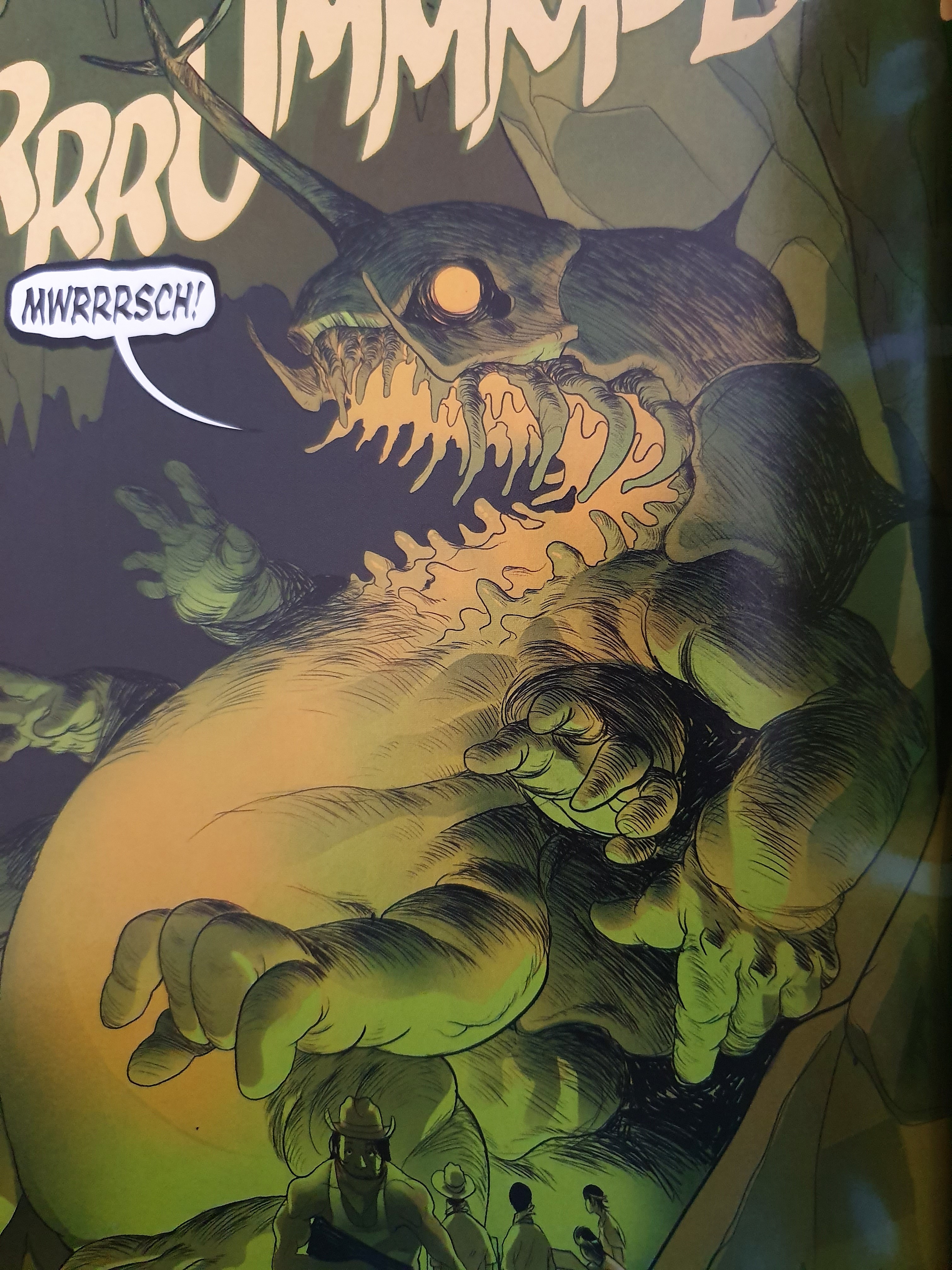 Verde, verde, verde. Esta cor, em tom fluorescente, corresponde aos monstros e ao ambiente subterrâneo tornando-se predominante numa grande quantidade de páginas. O desenho é pouco detalhado nos enquadramentos, focando-se sobretudo nas personagens ou em objectos concretos. É bom a mostrar expressões e posições, e competente a transmitir movimentos.