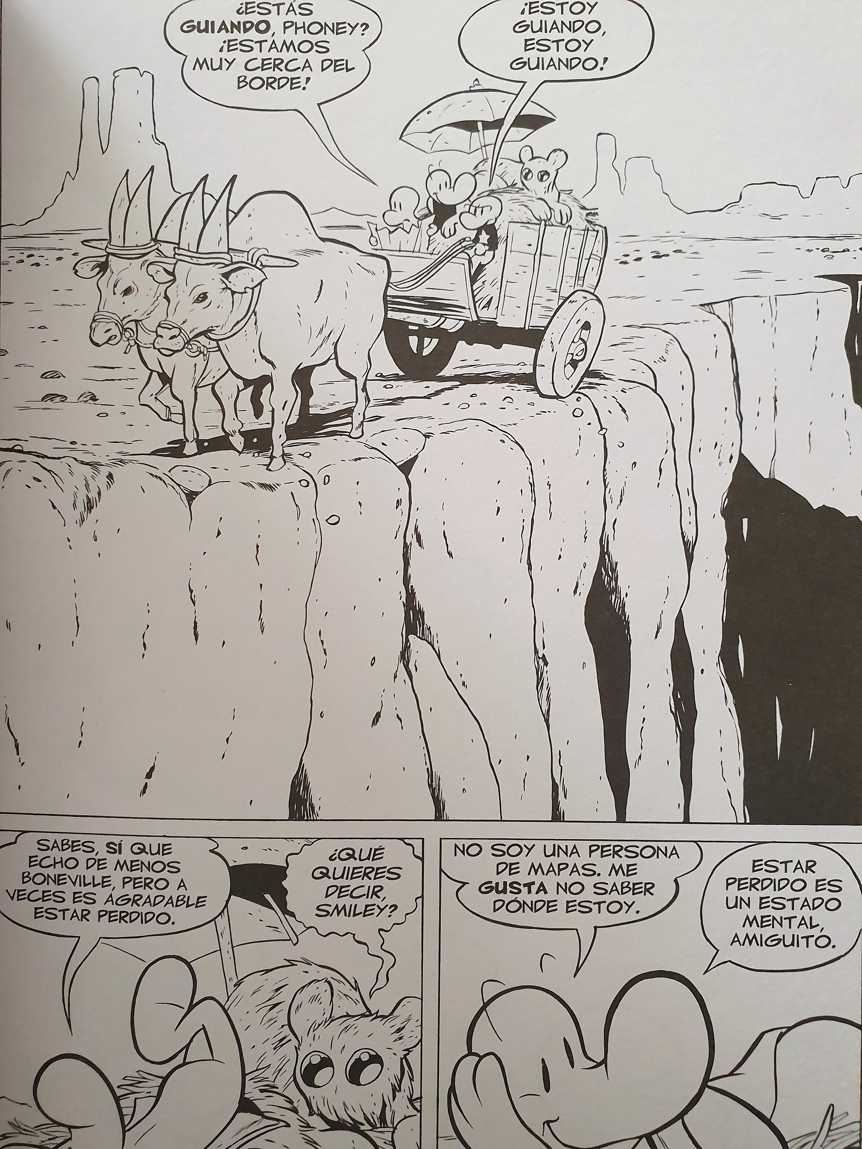 Eis mais dois spin-off de Bone, que apresentam histórias fora da narrativa principal. O Stupid, Stupid Rat-tails encontrava-se esgotado na edição inglesa, pelo que aproveitei para encomendar os dois em edição espanhola, capa dura, da Astiberri. Apesar das diferenças linguísticas, estranhei menos do que a minha expectativa.