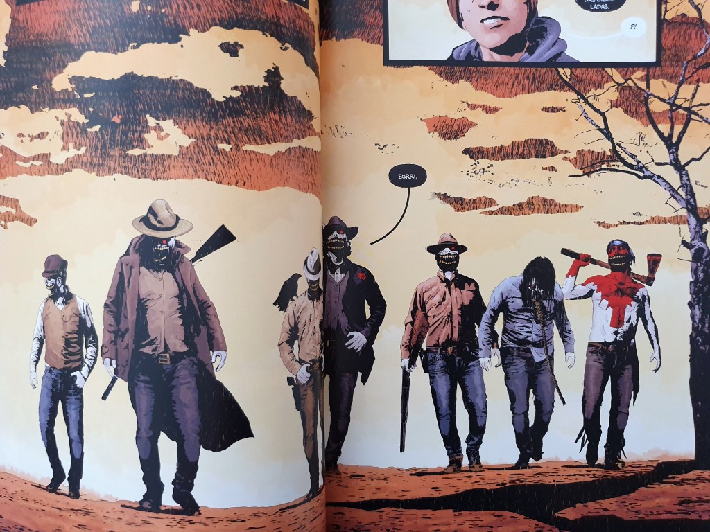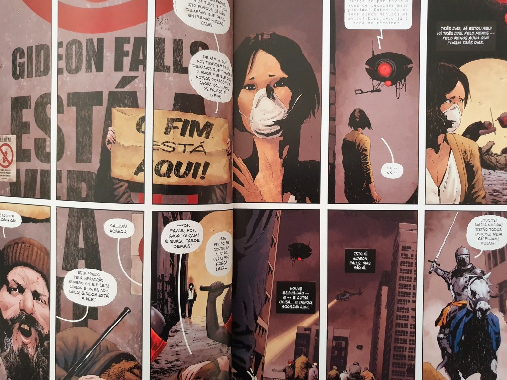Apesar da pouca constância narrativa (em velocidade e formato), Gideon Falls continua a ser uma leitura intrigante que vai desenvolvendo um puzzle assustador e arrepiante – mais pela tensão que existe no ar, de terrores não totalmente percebidos, que contamina o leitor. Será, no entanto, uma daquelas séries que deverei voltar a ler quando sair o volume final para refinar alguns entendimentos.
