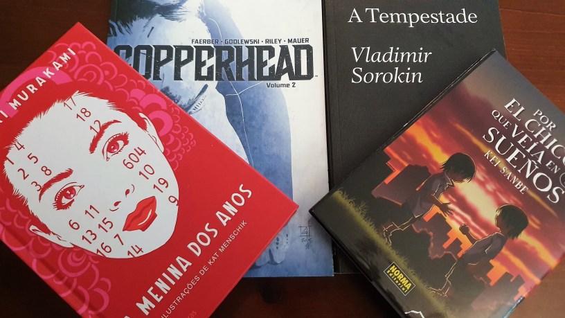 143 – A Tempestade – Vladimir Sorokin – Um livro que parece de fantasia mas é mais ficção científica. Aqui presenciamos uma viagem de urgência no interior dos inóspitos territórios russos, em que um médico procura levar uma vacina a uma povoação. Pelo caminho sucedem vários percalços. Uma narrativa dura, introspectiva e pouco típica que cativou apesar da estranheza;