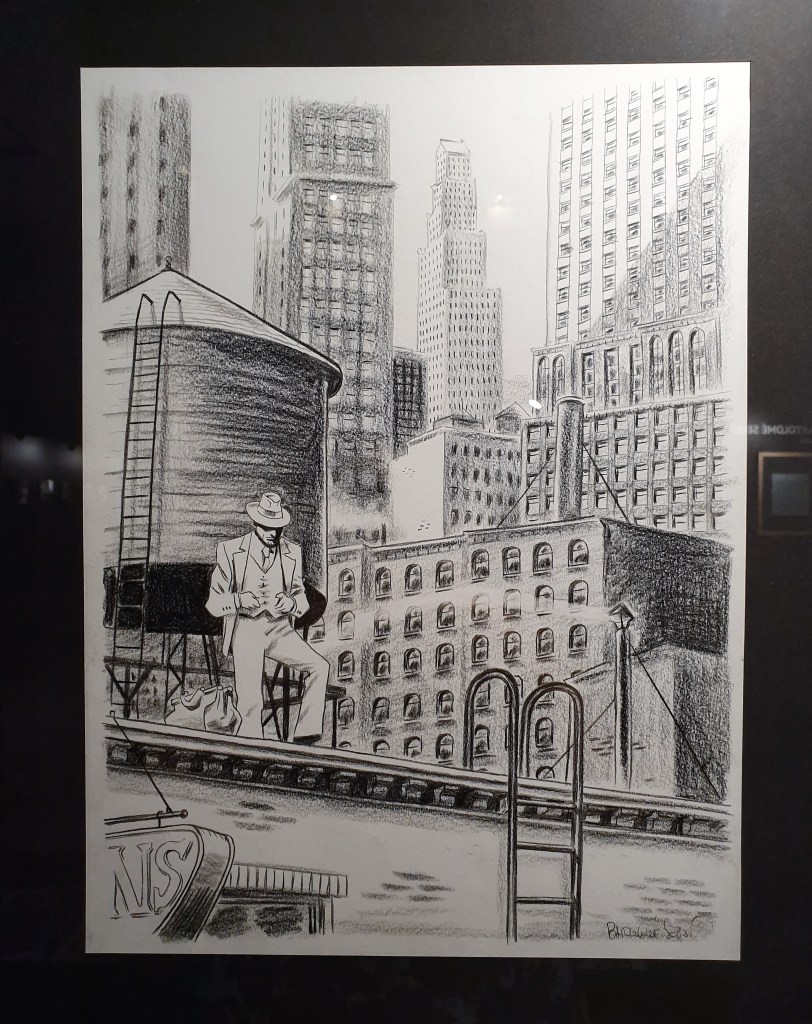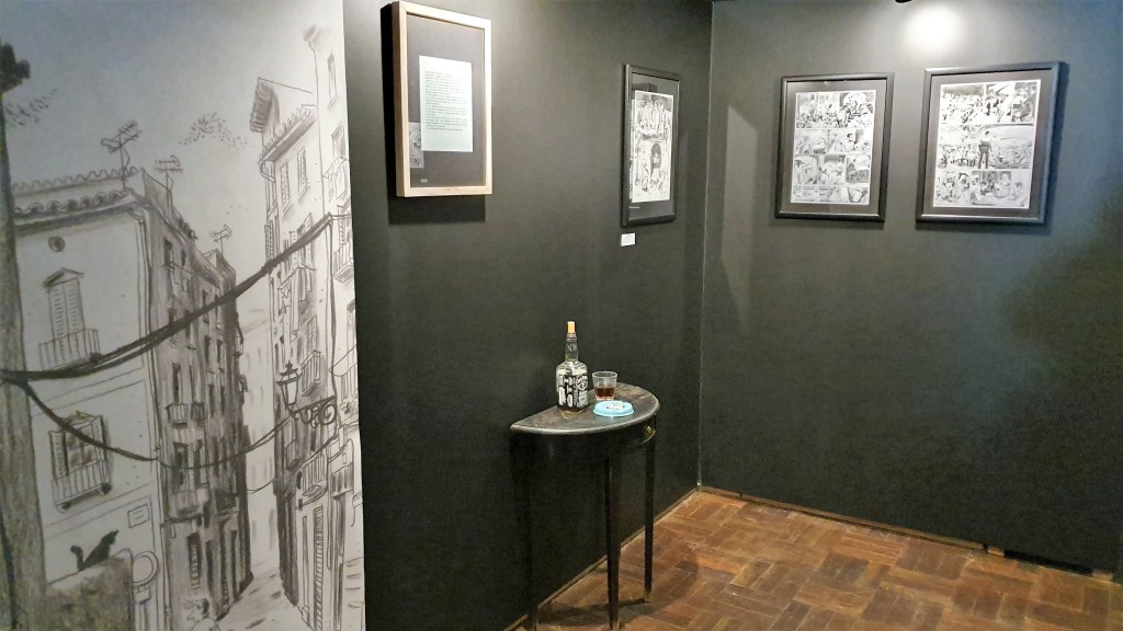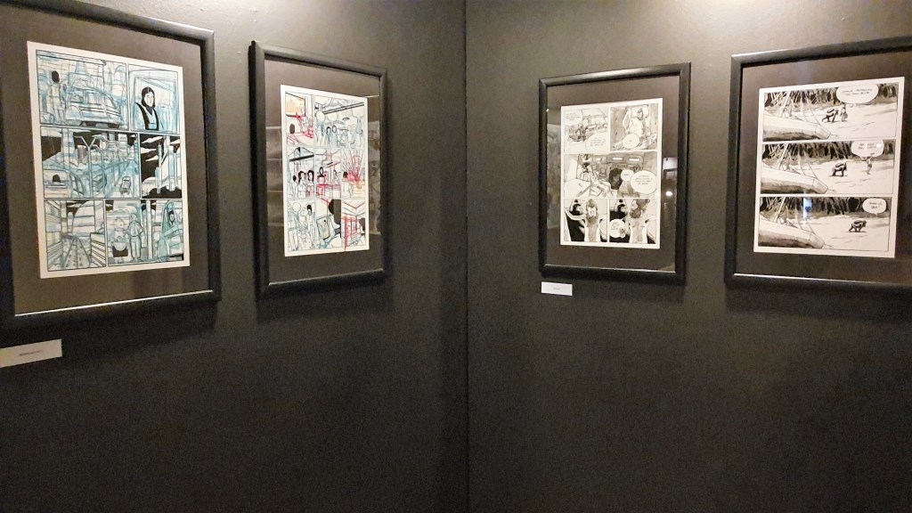 É, também, no interior do edifício que encontramos uma sala dedicada à BD, onde decorrem as apresentações e os lançamentos. Neste caso, dadas as medidas de restrição da pandemia, o acesso à sala era limitado.