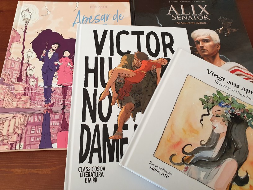 169 – Apesar de tudo – Jordi Lafebre – Uma obra fabulosa publicada pela Arte de Autor que nos apresenta uma história contada do fim para o início. As primeiras páginas apresentam-nos um casal de alguma idade que, finalmente, se junta. Seguem-se os momentos que os aproximaram ao longo de anos, e como foram adiando a união por diferentes projectos pessoais;