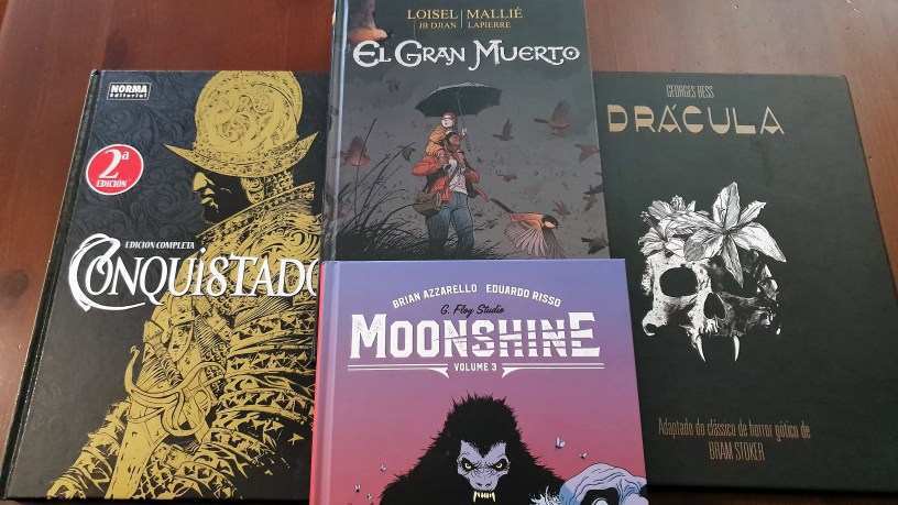 178 – Moonshine Vol. 3 – Terceiro volume da série de Azzarello e Risso que nos apresenta lobisomens durante a lei seca nos Estados Unidos da América, cruzando gangsters e famílias degeneradas no enredo. Movimentado, com elementos sobrenaturais, por vezes enveredando em linhas narrativas menos produtivas, é uma leitura curiosa;
