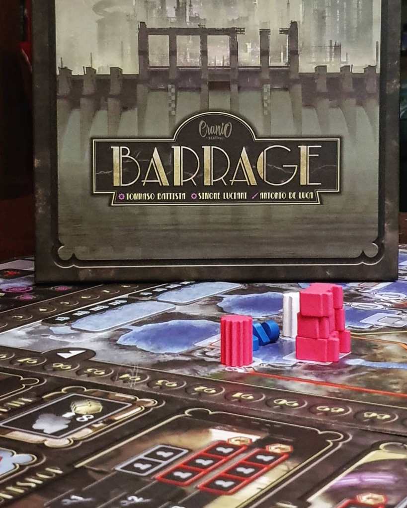 Foi um dos últimos jogos do ano, mas surpreendeu! O tema é forte e ajuda na concretização das acções, o visual é muito bom (quase Steampunk), os mecanismos são conhecidos mas funcionam de formas interessantes e envolventes. Apesar dos vídeos disponíveis não serem muito bons, o livro de regras é quase sempre claro (tem apenas dois ou três detalhes que teria colocado mais explícito) o que é raro num jogo desta dimensão. São duas horas de jogo duro, onde é necessário gerir bem os recursos e antecipar as jogadas de acordo com os elementos que sabemos irem acontecer nas próximas rondas: a circulação de água e a disponibilização de recursos.
